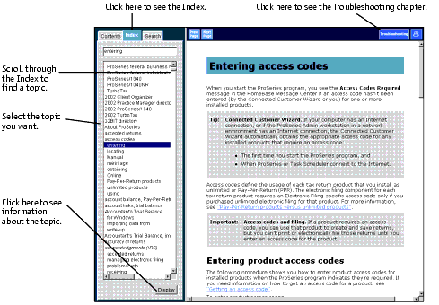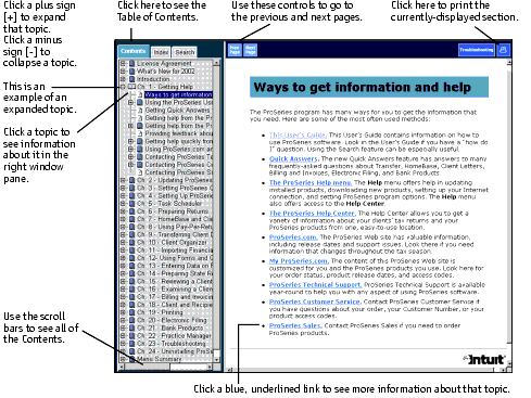 For instructions on using the ProSeries User’s Guide, see the following sections: